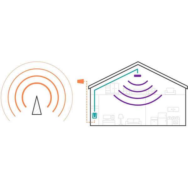 The powerful antenna reaches out to access a voice and 3G, 4G, and LTE data signal, and delivers it to the booster